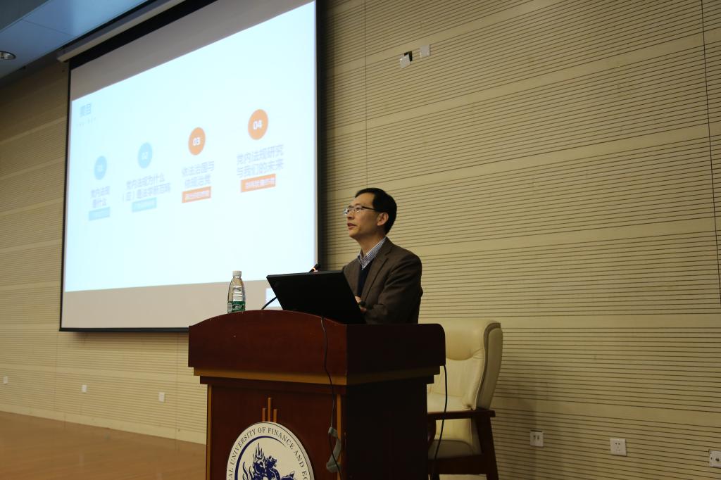 2018年11月30日下午,中国法学会党内法规研究中心主任王伟国应邀到访,在学术会堂为我院师生主讲“作为法学新范畴的党内法规”。本次活动是研究生法理学课程外请讲学活动,由授课老师张小平副教授主持,受研究生院“研究生课堂嘉宾讲学支持计划”支持,本次活动同时为法学院党委组织的支部学习活动。院党委书记吴韬教授、蒋劲松教授、副院长李伟副教授、工会负责人曹晓燕副教授、许冰梅副教授、刘燕副教授、张琪副教授、院长助理赵真副教授、刘权副教授、《财经法学》副主编朱晓峰副教授、武腾副教授、王叶刚副教授、张晓冰博士、马静远博士、周游博士、殷秋实博士、白冰博士、中国法学会党内法规研究中心专职研究人员以及2018级研究生、部分本科生、各党支部负责人参加了学习。